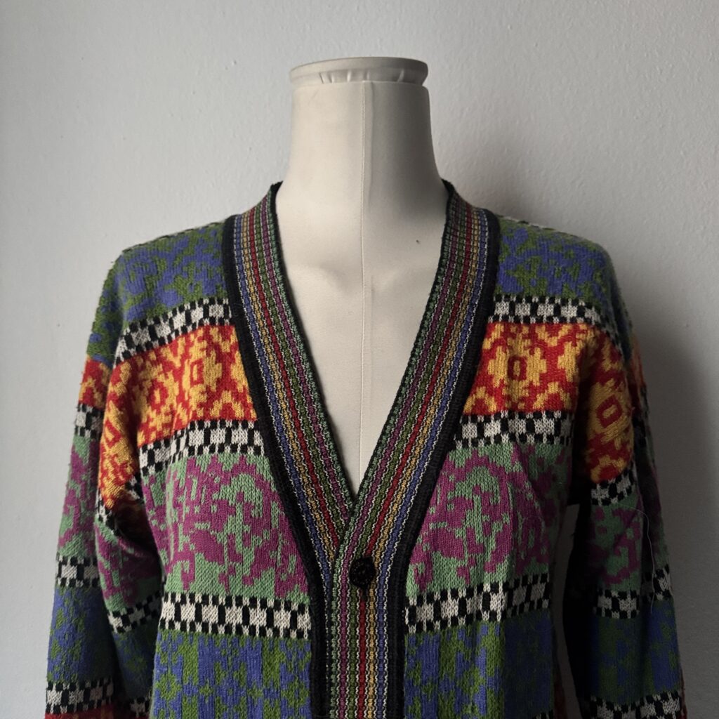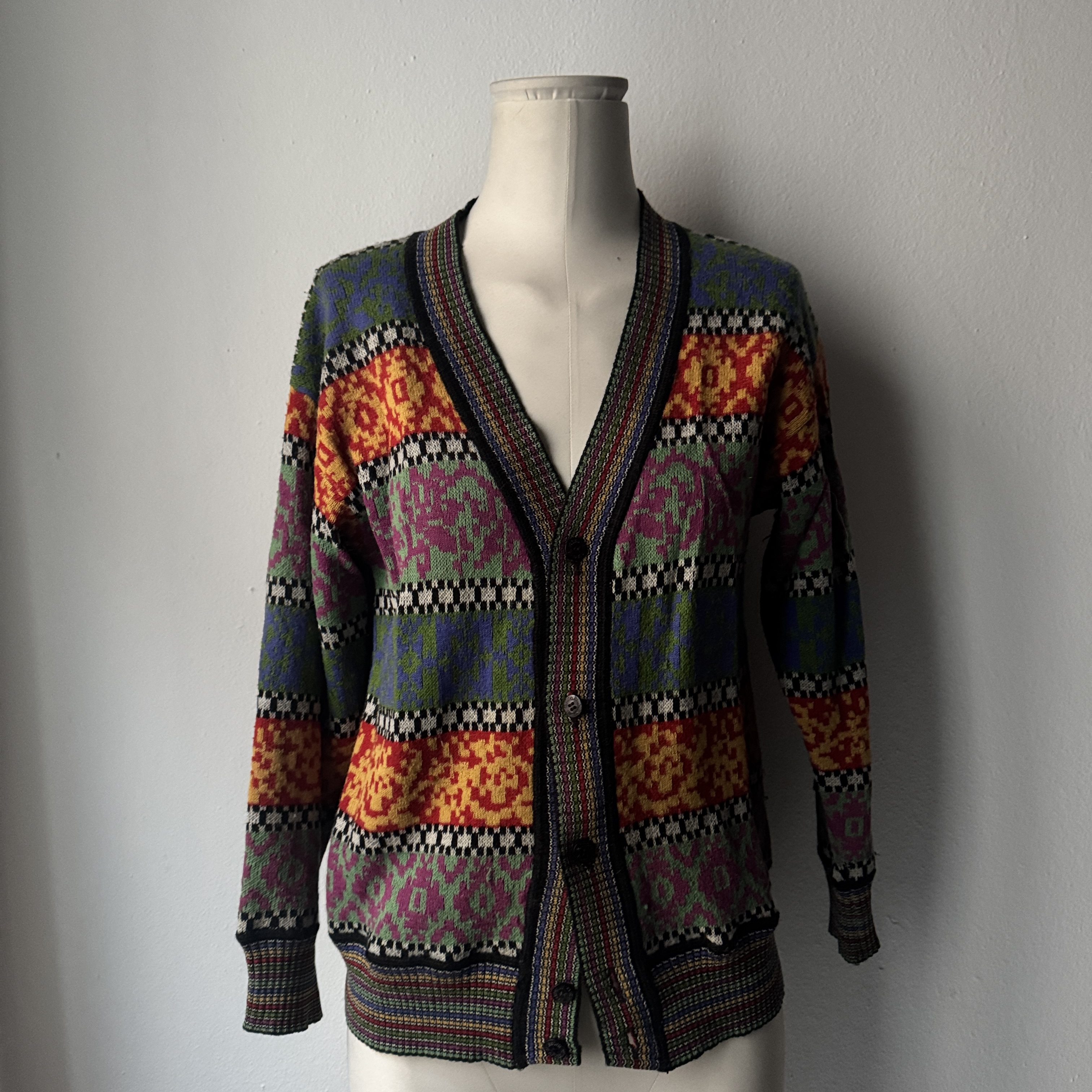 Cardigan in lana Missoni caratterizzato da una fantasia multicolore iconica del brand e riconoscibile.