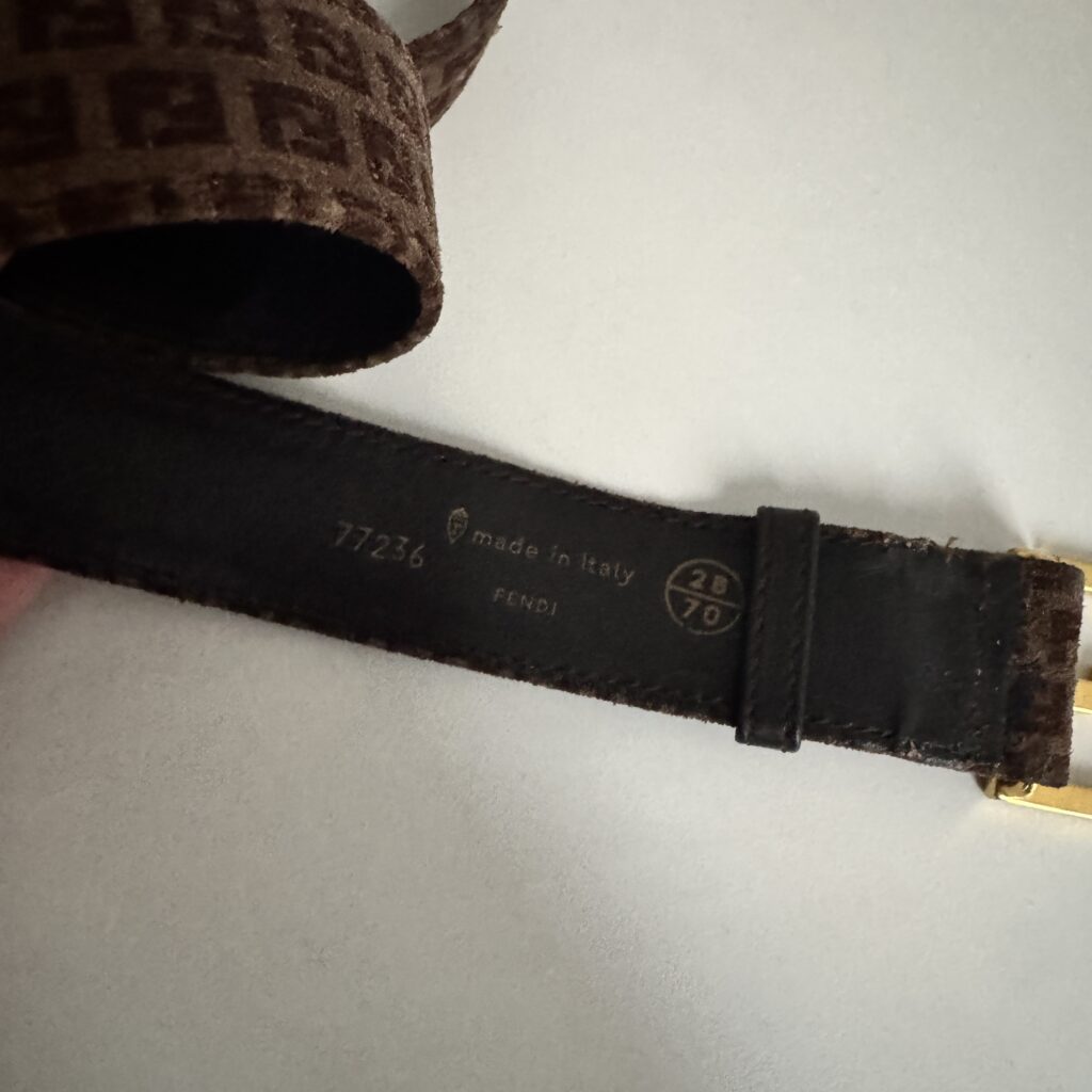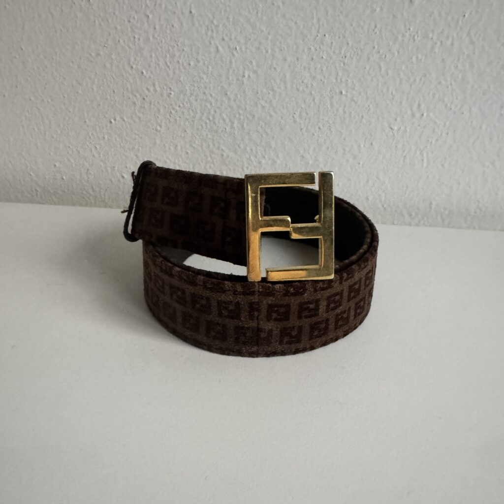 Vintage Fendi belt featuring the brand’s iconic monogram pattern in brown tones.