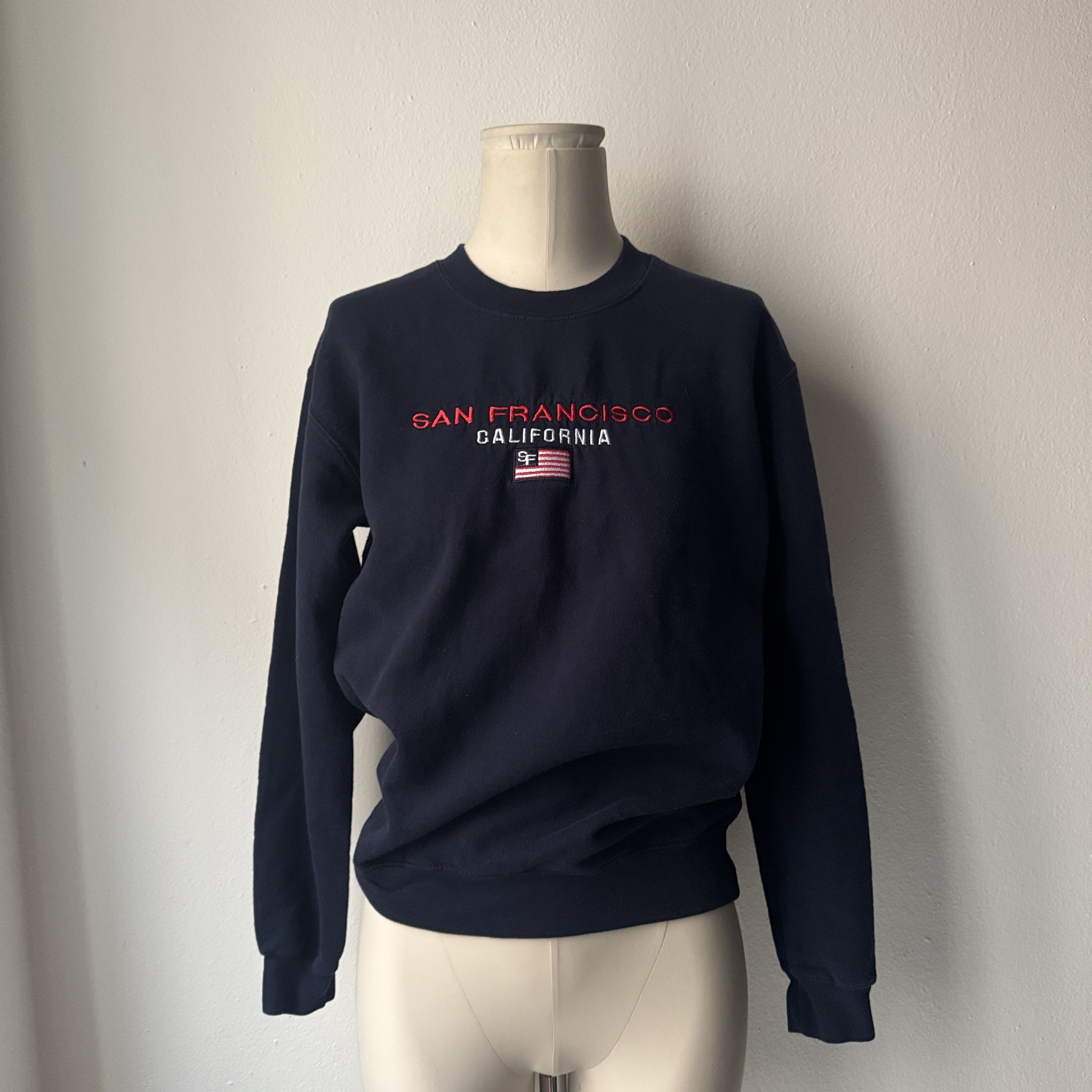 Blue American-style sweatshirt featuring “San Francisco California” lettering on the front.