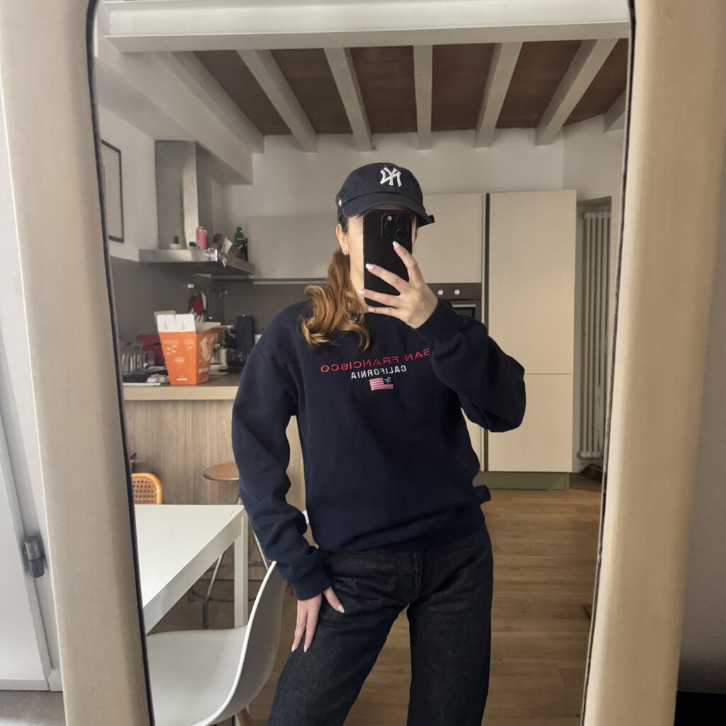 Felpa blu in stile americano con scritta “San Francisco California” sul davanti.