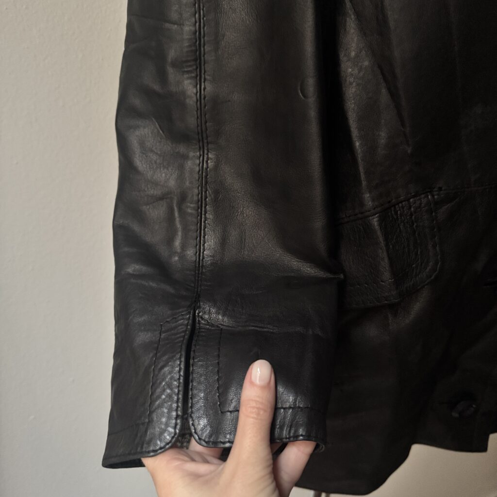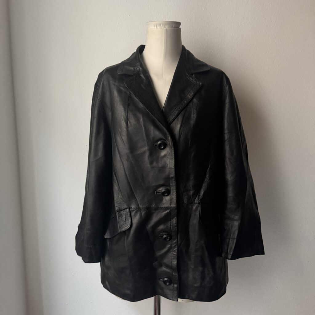 Giacca vintage anni ’90 in pelle nappa morbidissima, dal taglio dritto e pulito.